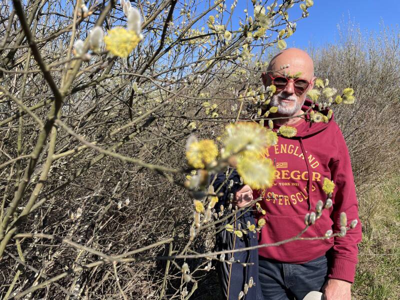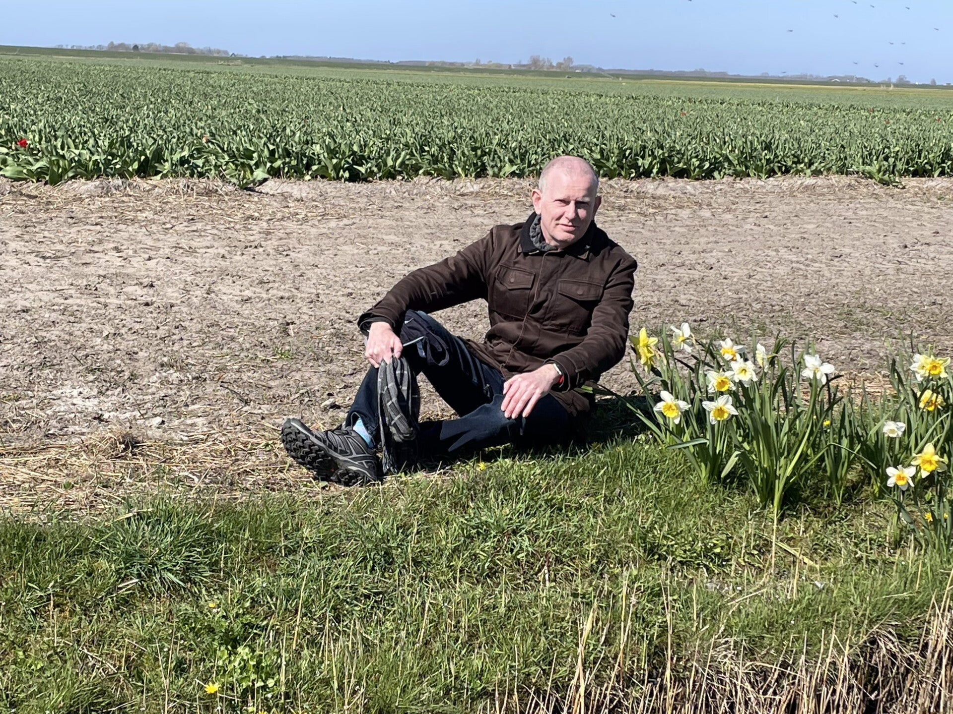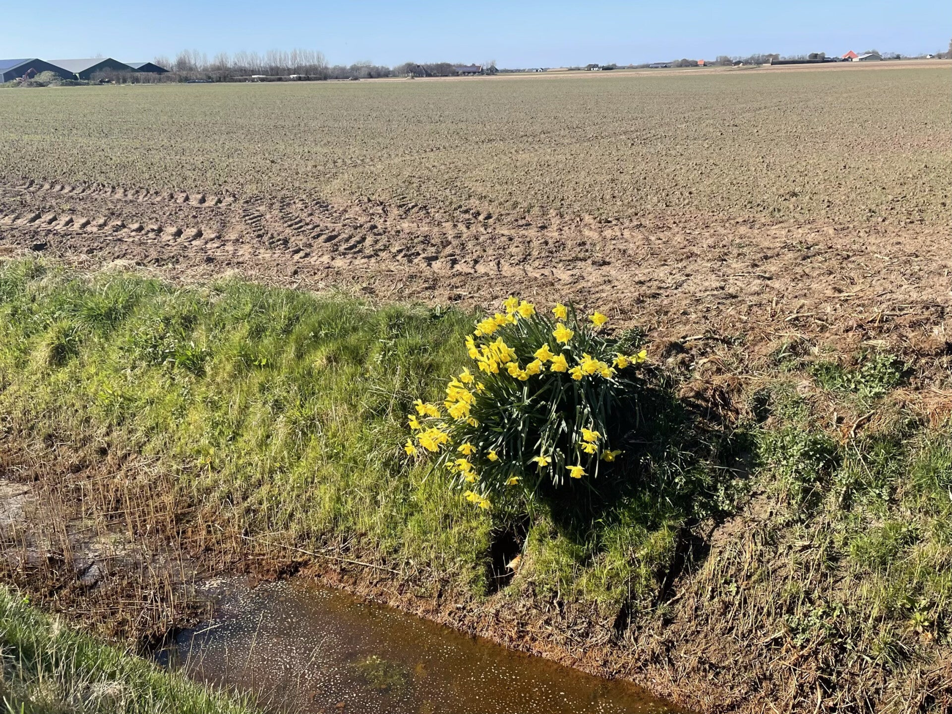 De narcissen (paasbloemen) groeien hier gewoon in groepjes langs de grachten in Den Burg en op het ganse eiland.