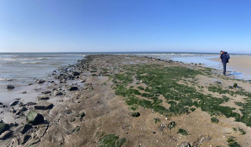 Een wandeling aan de kustlijn van de Waddenzee in het zuidwesten van Texel, nabij 'De Koog' en het natuurpark Ecomare.