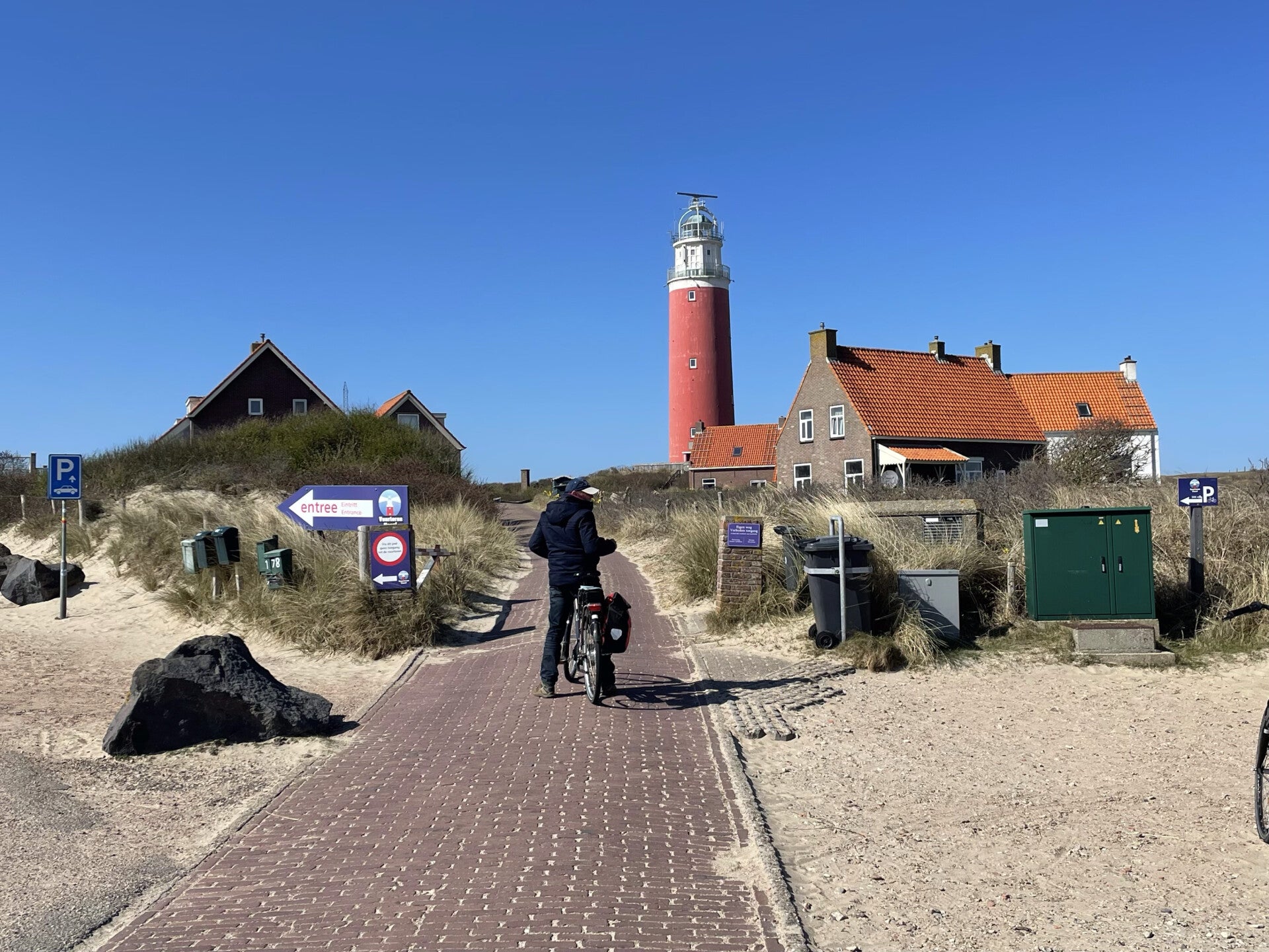 We zijn aangekomen in het noorden van het eiland aan de rode vuurtoren. De toren wordt ook wel 'De vuurtoren Eierland' genoemd en is gelegen aan het dorp 'De Cocksdorp'.