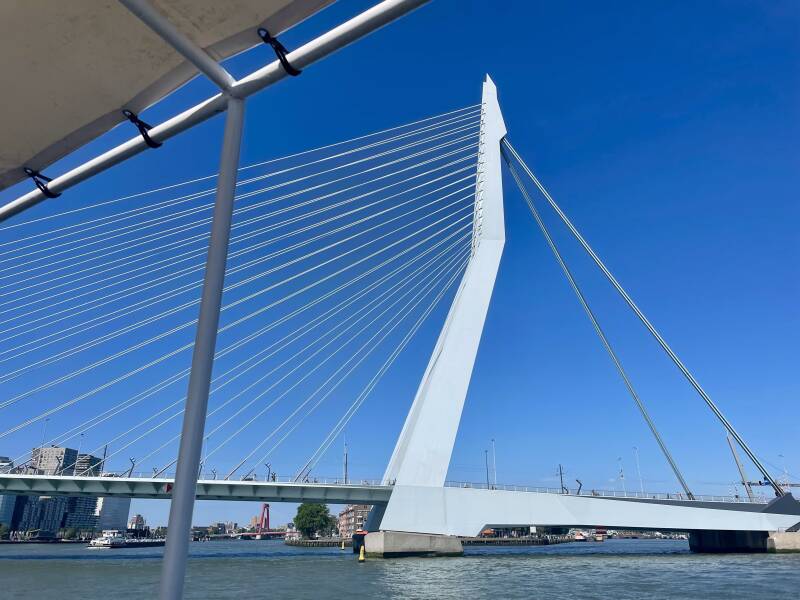 Zicht vanop de iconische 'Erasmusbrug' over de rivier de Nieuwe Maas.