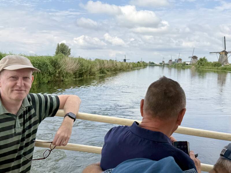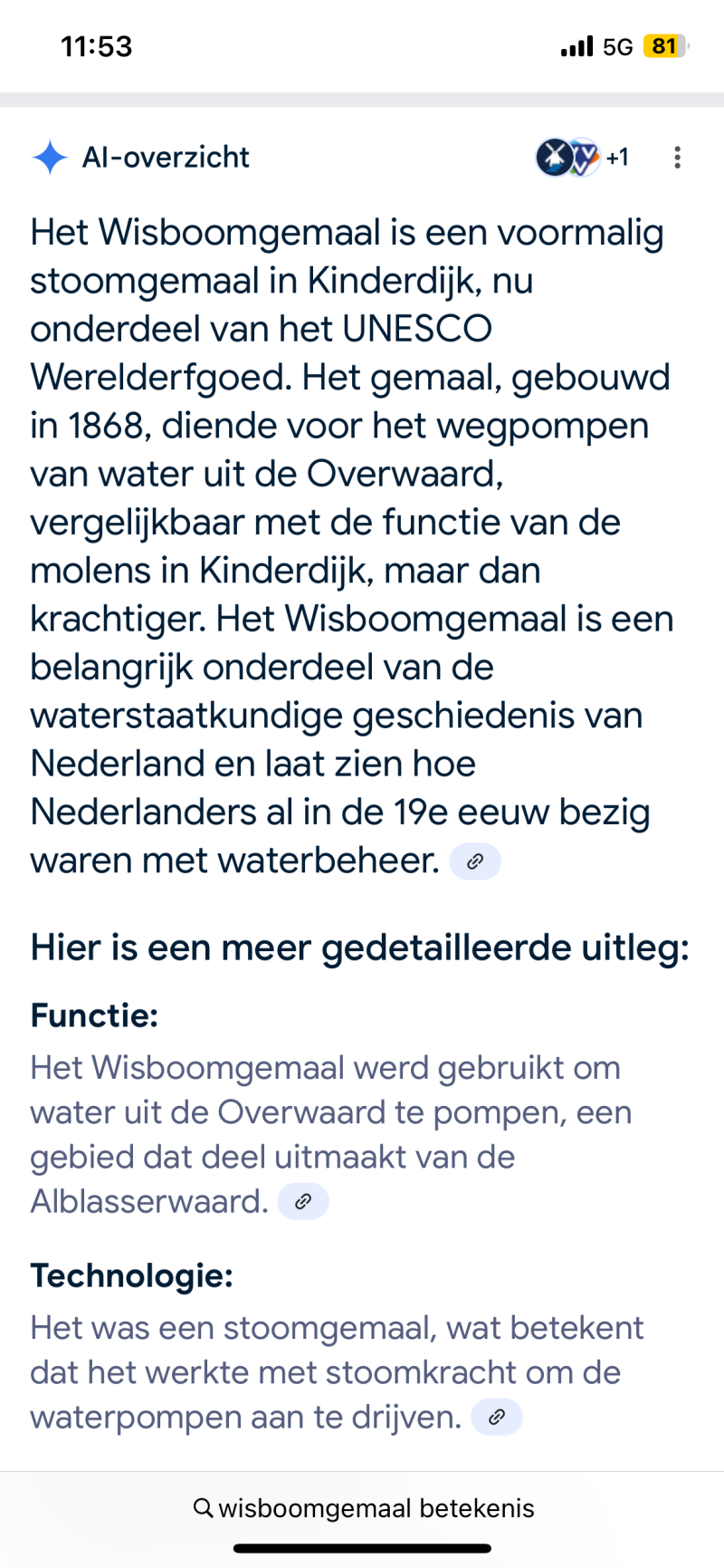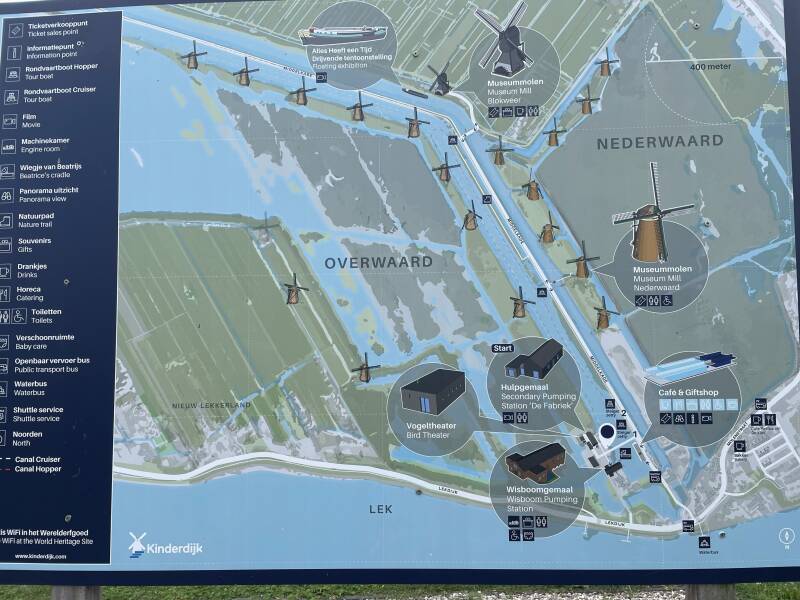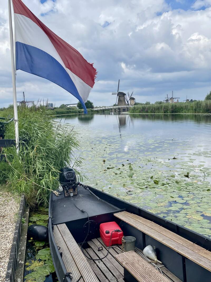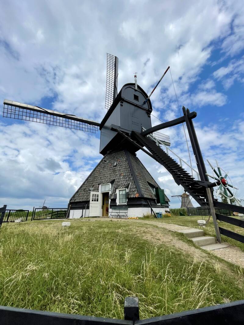 Dag 4, 13 juli. Vandaag is de laatste dag van onze citytrip. Onderweg stoppen we nog in de Werelderfgoedsite 'Kinderdijk'. Dat is een dorp gelegen in de Alblasserwaard. (gemeente Molenlanden) Het is wereldwijd beroemd om zijn indrukwekkende rij van 19 windmolens. Deze molens, gebouwd in de 18e eeuw, vormen samen een ingenieus waterbeheersysteem dat al eeuwenlang helpt om het omliggende land droog te houden. Het is betoverend mooi, authentiek en daarom ook heel toeristisch.