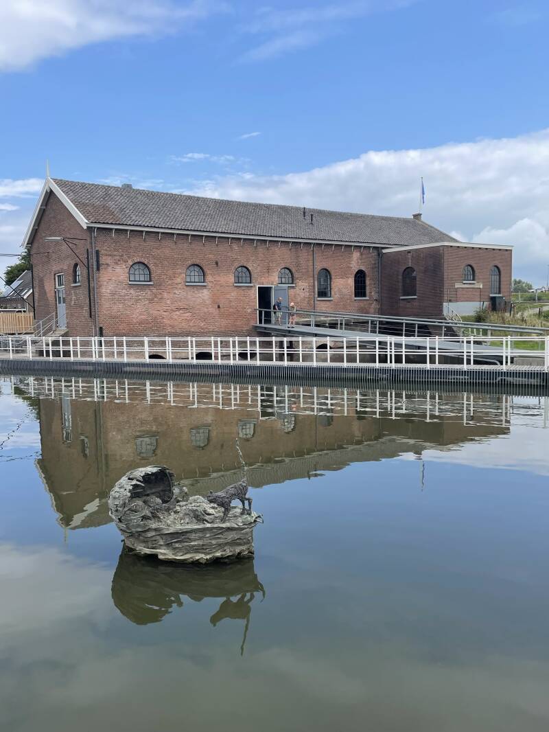 Wisboomgemaal gebouw, waar een waterpompmachine staat die gebouwd werd in 1868 en nu als museum fungeert. Dobberend op het water; "Het wiegje van Beatrijs", gekoppeld aan de 'Sint Elisabethvloed', een woeste storm uit 1421.