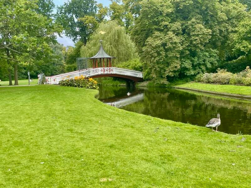 Een kort bezoek aan Kopenhagen deze keer want we bezochten deze stad reeds 3 jaar geleden. Enkele kilometers buiten het stadscentrum kan je naast de zoo ook de Frederiksberg tuinen vinden. 64 hectare aan groene oppervlakte, samen met het Søndermarken park aan de overkant van de weg. Frederiksberg is een romantisch landschap in Engelse stijl, uit de tijd van Frederik de 4e uit de jaren 1690 met grasperken, kanalen, vijvers, grotten, tempels en paviljoenen. Hij vaarde er zelf met plezier rond en ook vandaag nog kan je er rondvaren in een bootje zoals Frederik IV indertijd deed.
