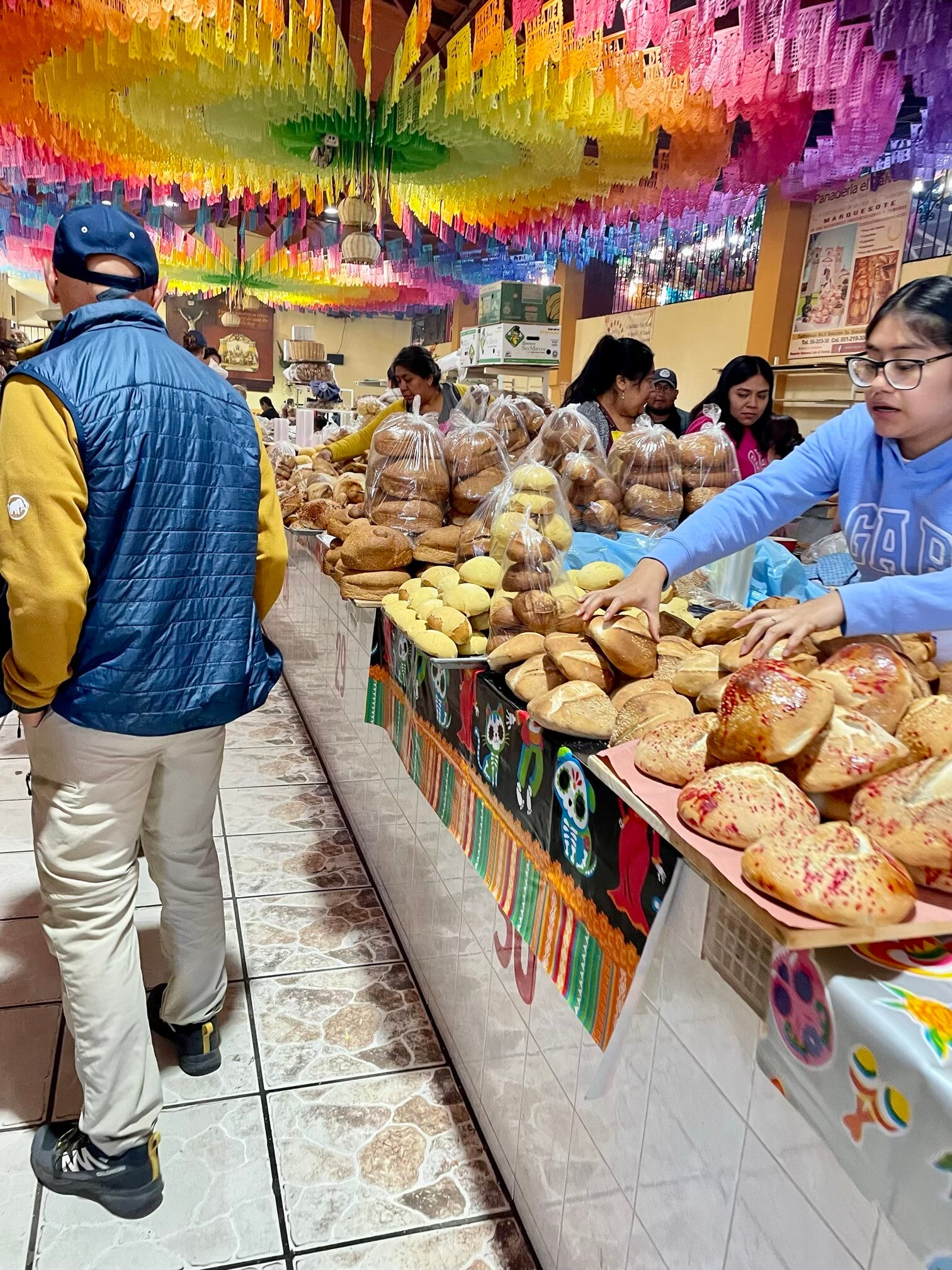 We hielden stop aan een plaatselijke mercado en nuttigden er de plaatselijke broodjes. De lokale warme prak durfden we niet aan.