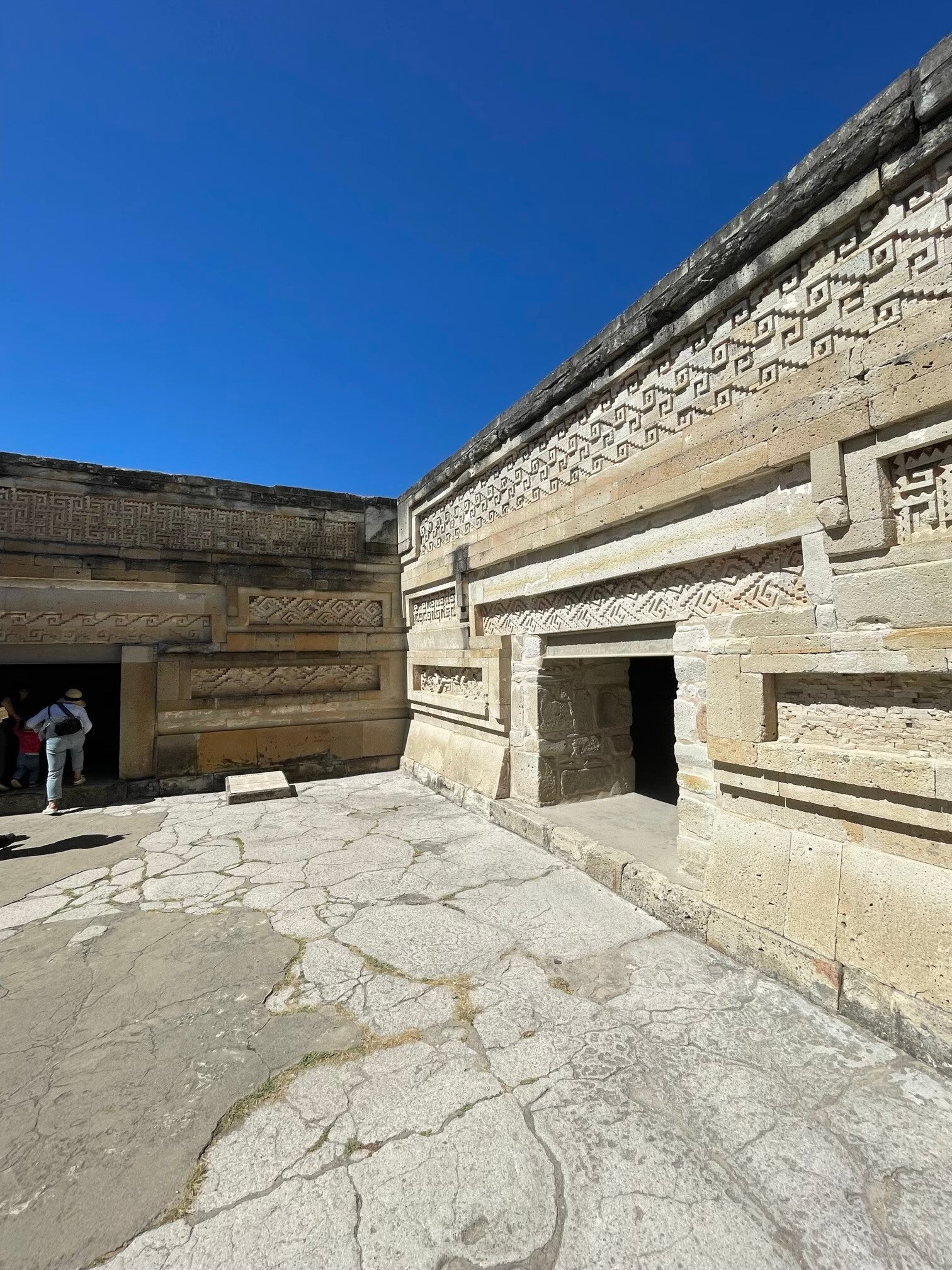 Mitlá, een tempelstad ooit van de Zapoteken, de oorspronkelijke bevolking van Mexico.