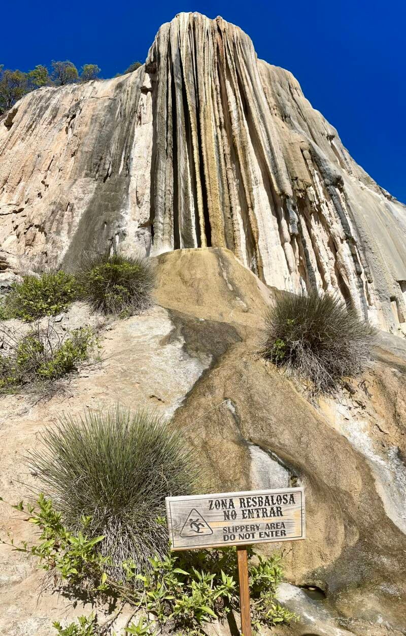 Hierve el agua, dat was de volgende stop. Dat is een natuurreservaat met een schitterend uitzicht over het gebergte. Er zijn enkele poelen waarin je kan zwemmen. Het water kleurt felgroen door alle mineralen erin.